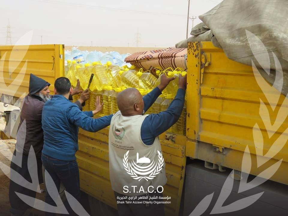 In light of the difficult conditions experienced by the people of Tawergha, the Sheikh Al-Taher Al-Zawi Charitable Foundation distributed 500 food baskets represented in the necessary supplies to the displaced Tawerghans in the Qararat Al-Qatf area, located 87 km north of Bin Walid, and its road connects the coastal road to the east and south of Tawergha. And that after the faltering return to their area, which was called by the President of the Presidential Council of the Government of National Accord.