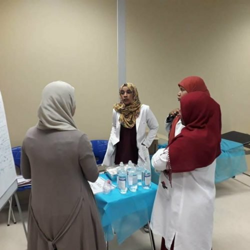 The training course targeted 14 trainees, between a midwife and a nurse, for 4 health centers (Al-Disa, Germa, Ibrik, Al-Fajeej) in Ubari, Libya, through which the trainees had a better understanding of the principles of screening screening, the principles and organization of care in low-risk pregnancy, identifying a woman High-risk, high-risk fetal identification.